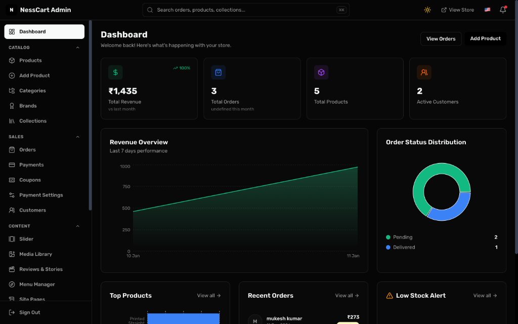 The ultimate e-commerce solution for modern businesses. Features a powerful admin dashboard, real-time analytics, inventory management, and seamless payment integration.